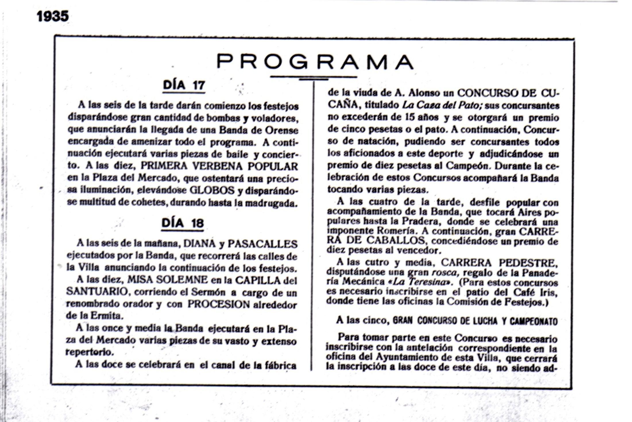 1935 Programa Fiestas Días 17 y 18