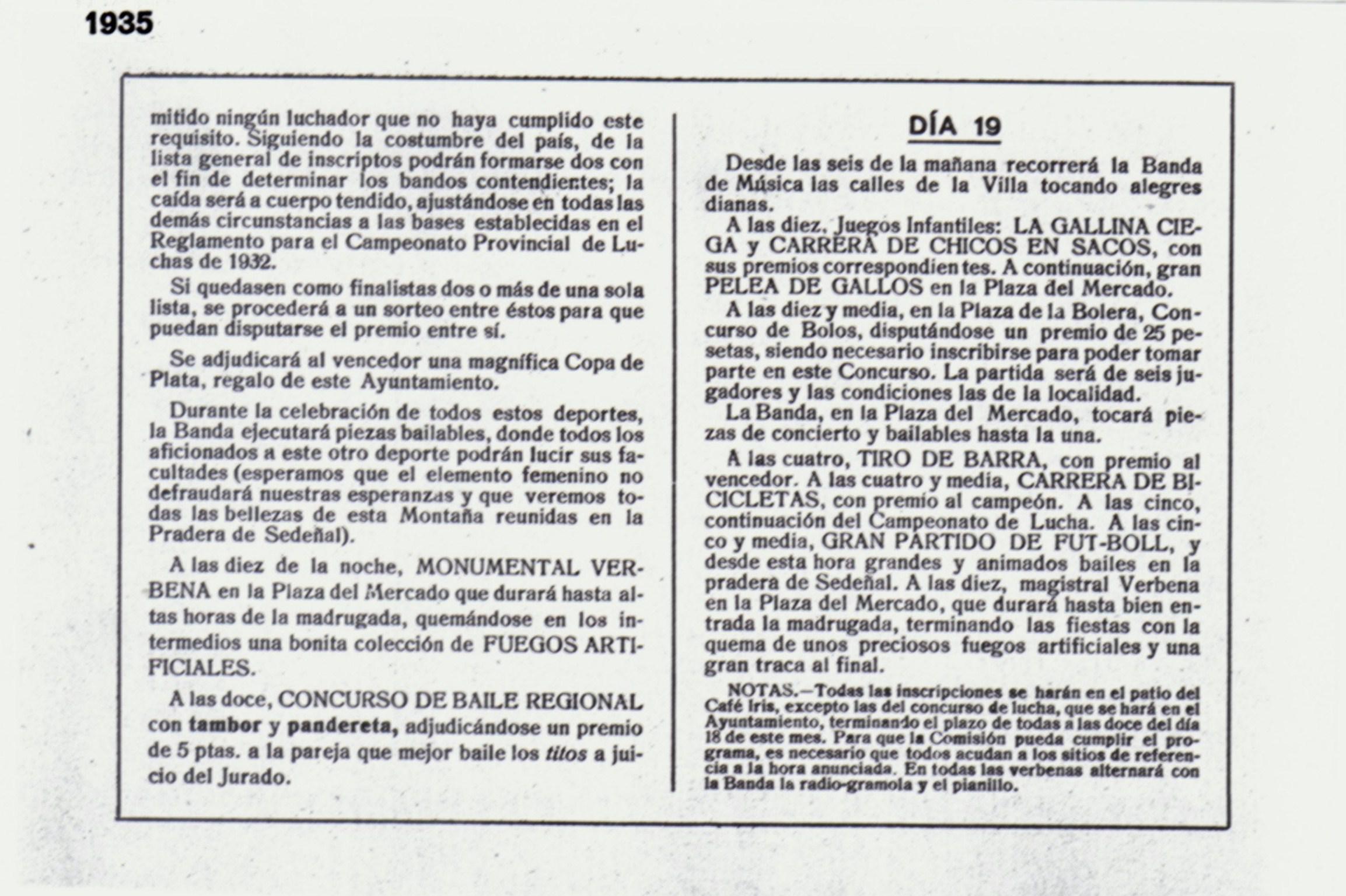 1935 Programa Fiestas Día 19